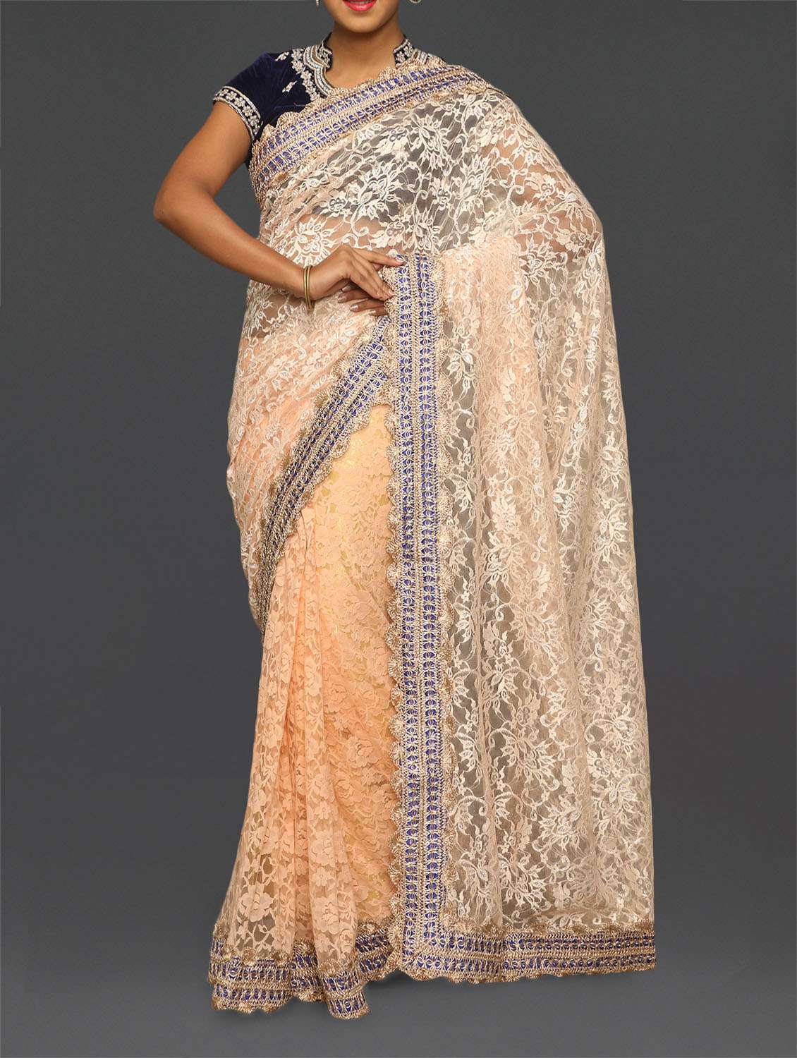 #1 cream gota bordered lace saree & similar products...