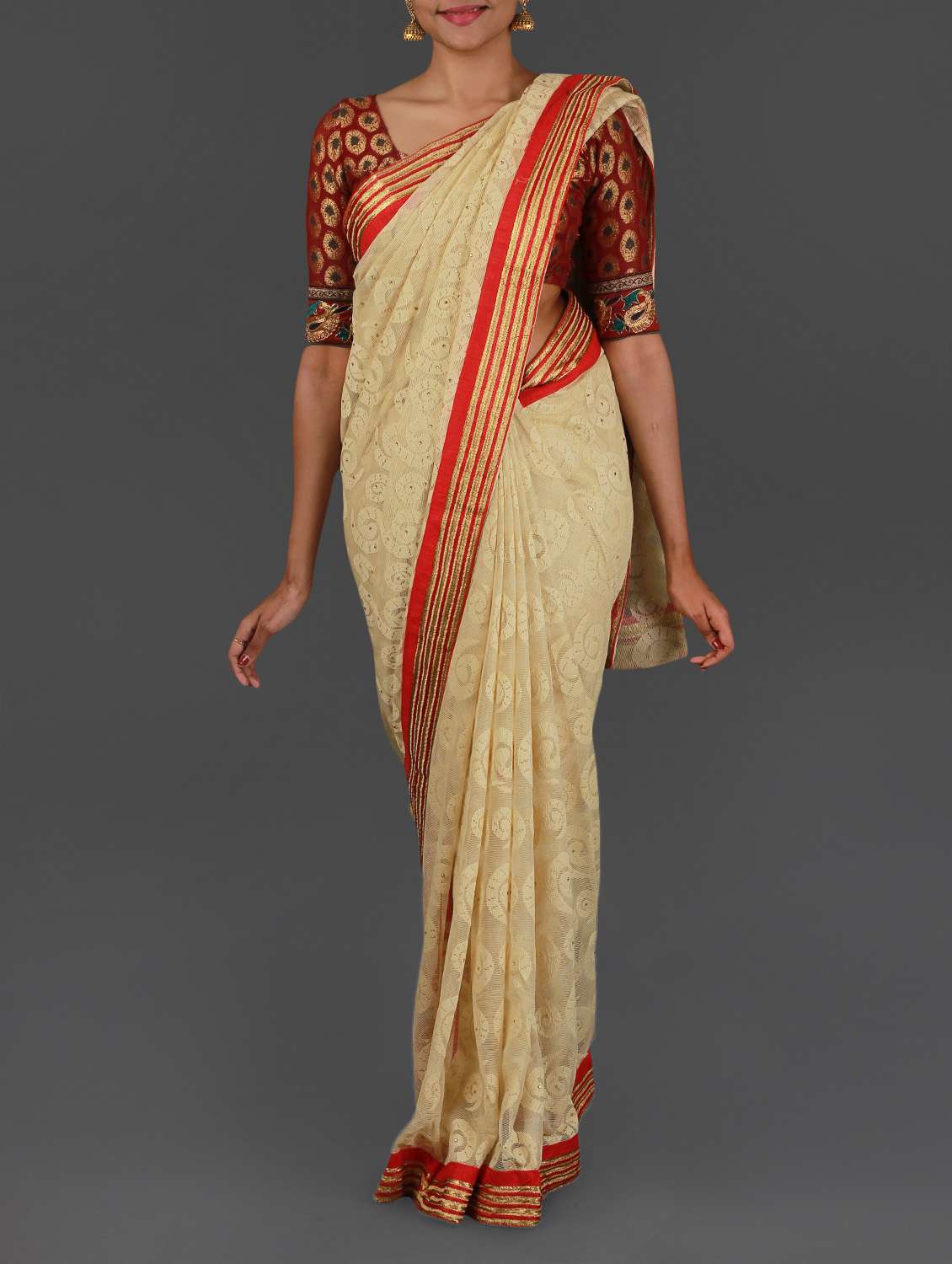 #1 embellished beige jacquard net saree & similar products...
