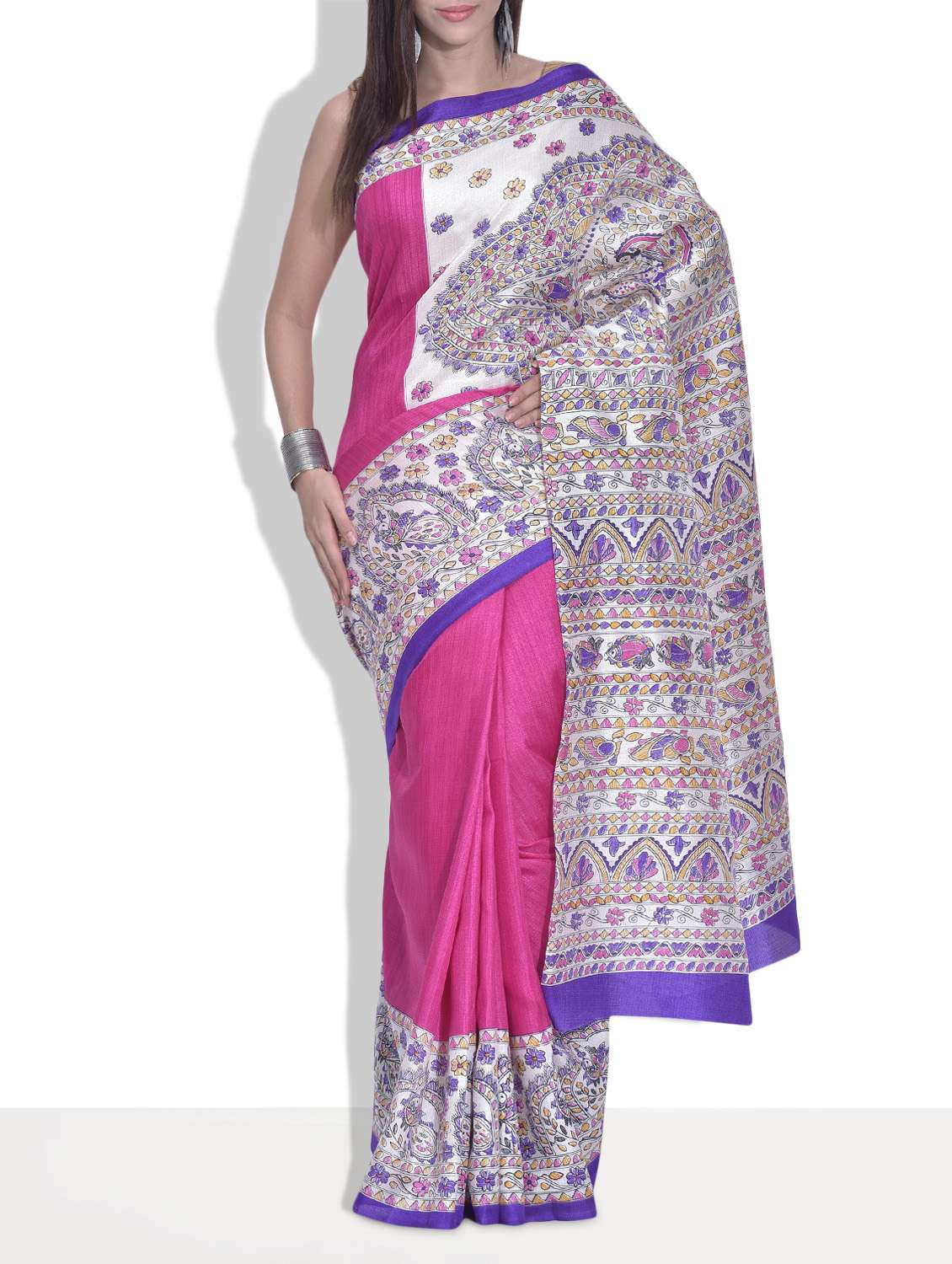 #2 pink and purple silk madhubani saree & इसी तरह के उत्पाद...