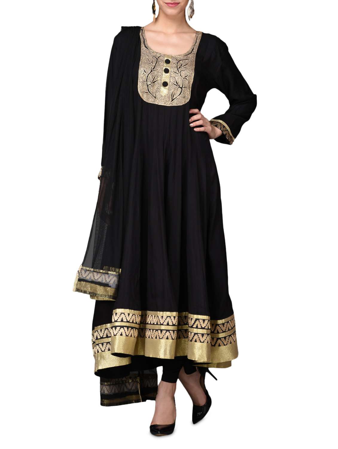 #1 black and gold embroidered anarkali suit set & similar products...