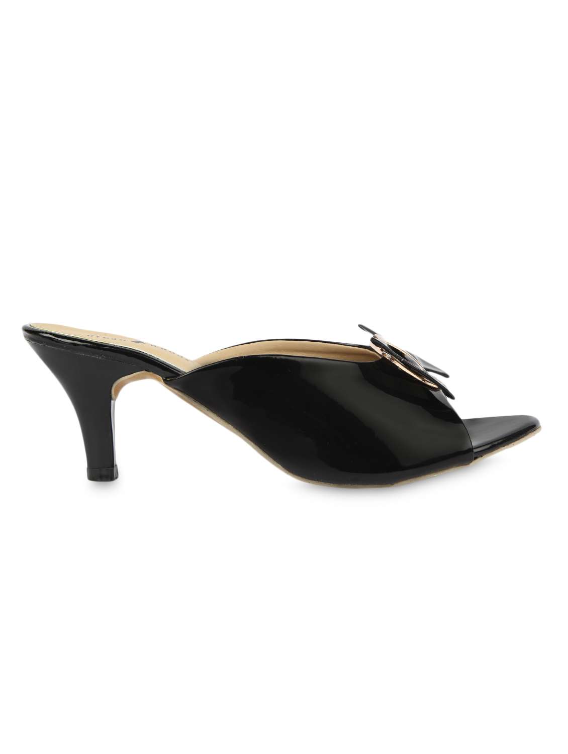 #4 bow attached peep toe glossy black heel sandals & similar products...