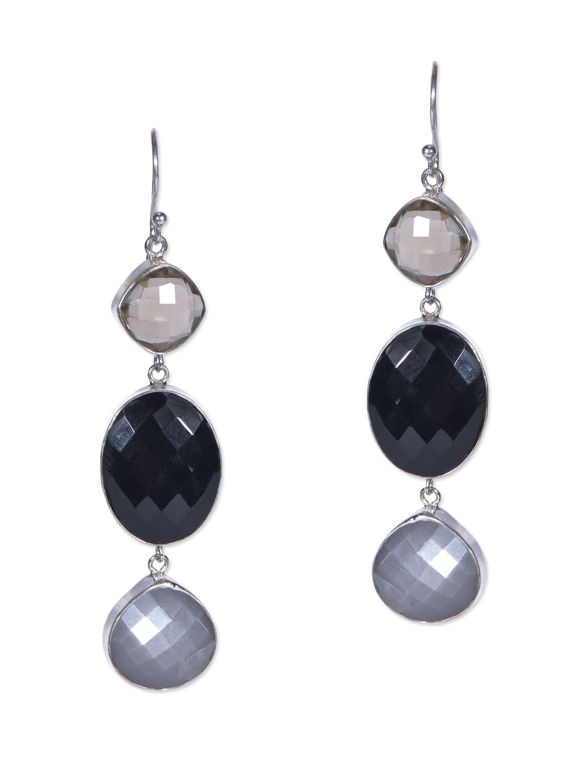 #4 black onyx quartz gem stone silver earrings & similar products...