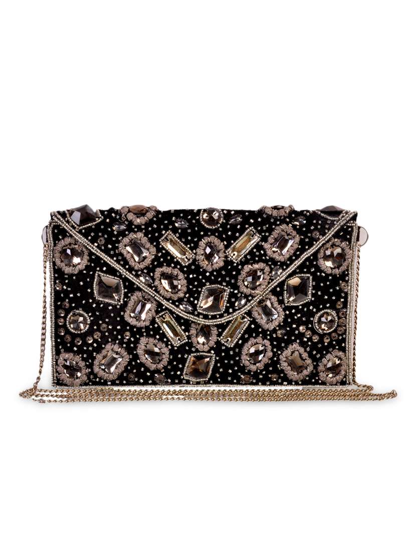 #4 black embellished cotton sling cum clutch bag & similar products...