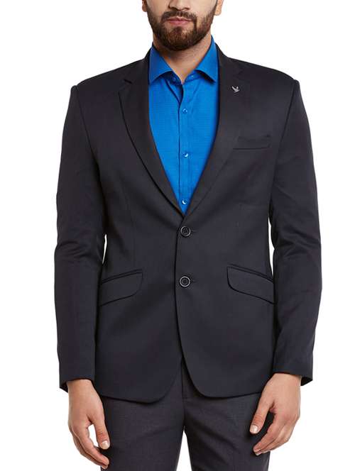 #1 navy blue wool & polyester blend casual blazer & similar products...