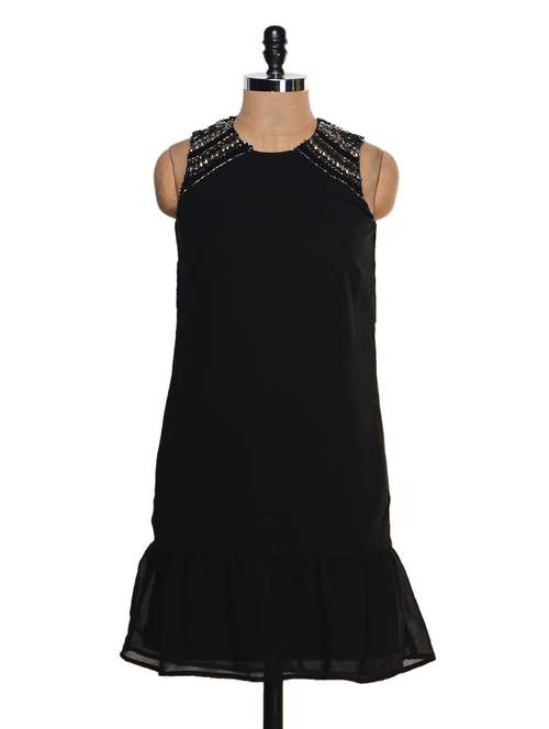#1 solid black dress with embellished shoulders & similar products...
