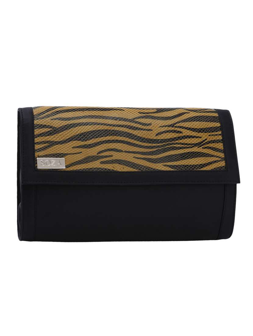 #3 zebra print textured black leather clutch & similar products...