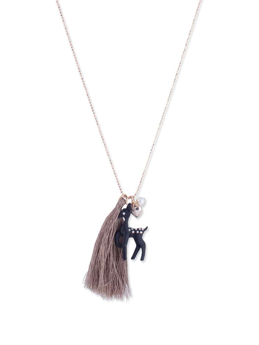 #3 gold long necklace with deer pendant & similar products...