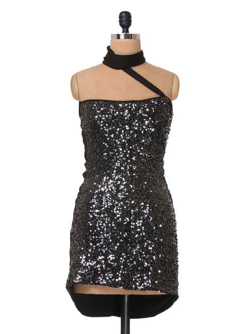#1 black color sequin embellished color cotton knit dress & similar products...