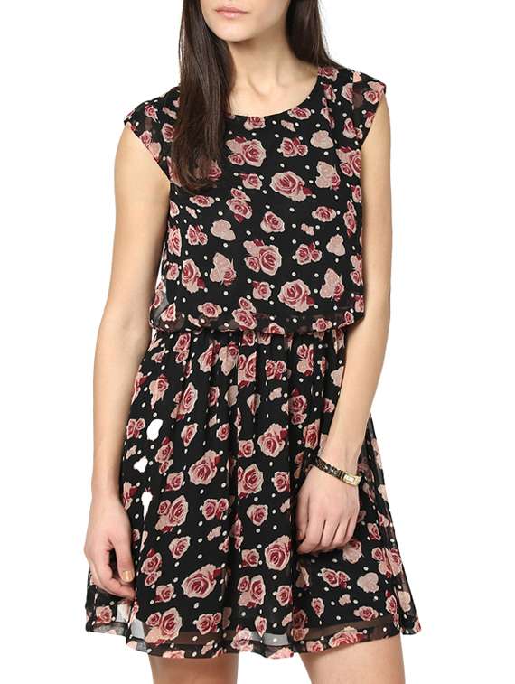 #1 rose print gathered dress & similar products...