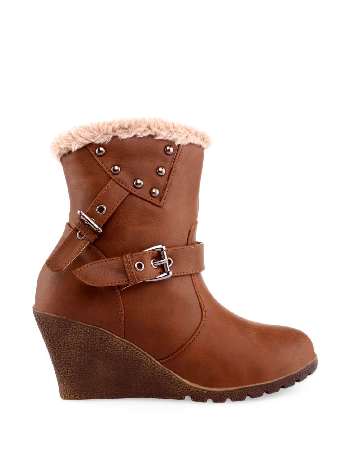 #4 metal studded brown wedge boots & similar products...