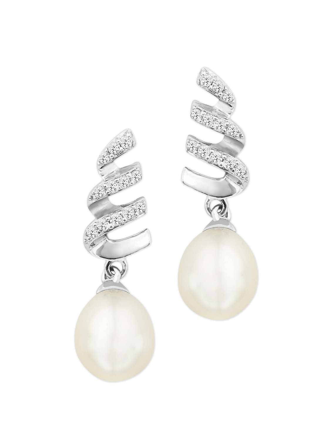 #4 spiral crystal studded earrings with pearl drop & similar products...