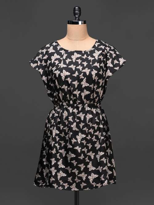 #1 black butterfly print polycrepe dress & similar products...