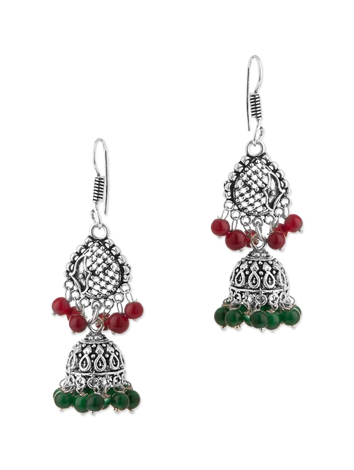 #4 Red & Green Beaded Oxidized Silver Jhumkis & similar products...