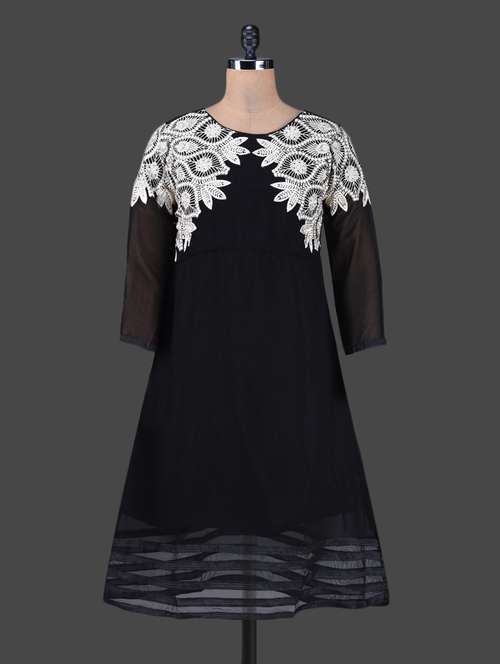 #1 long sleeve embroidered shoulder round neck dress & similar products...