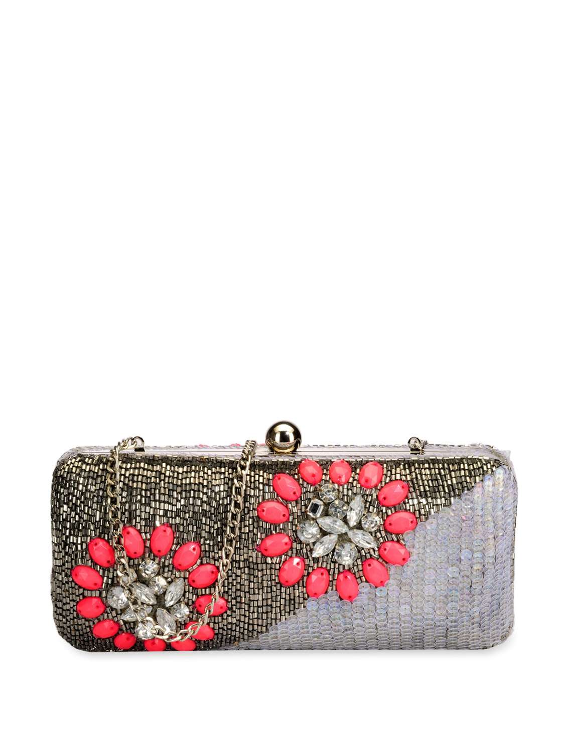 #2 neon pink crystal and multi sequins embellished box clutch & similar products...