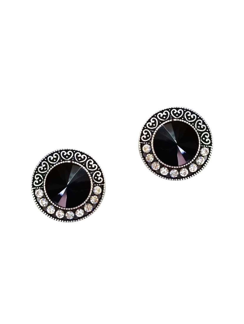 #3 black silver tone stone earrings & similar products...