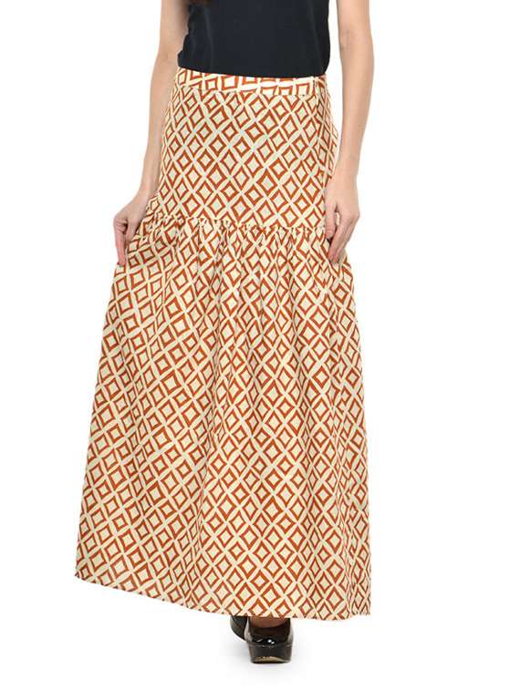 #1 cream and ochre printed maxi skirt & similar products...