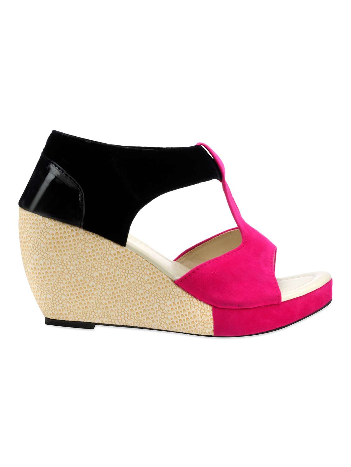 #4 Velvet Pink & Black Color block Open toe Wedges & similar products...
