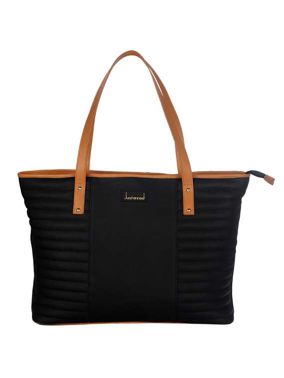 #2 justanned black leatherette puffered tote bag & इसी तरह के उत्पाद...