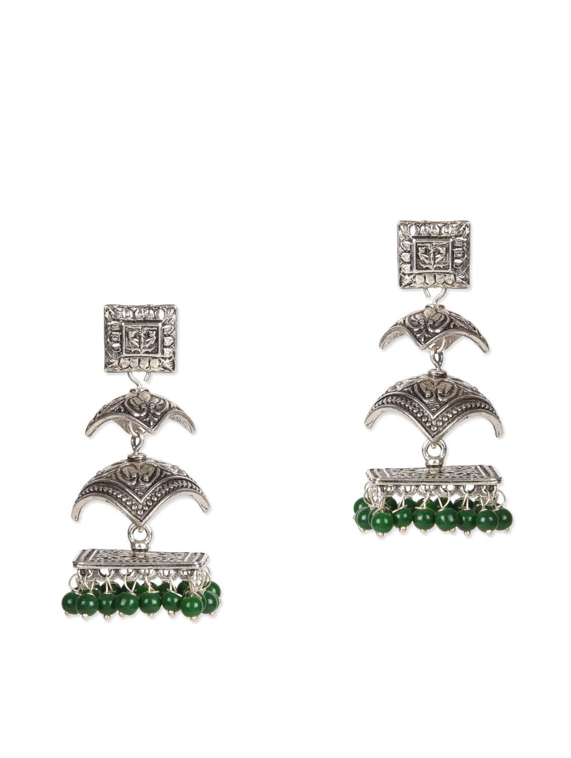 #4 silver and dark green beaded tiered jhumki & similar products...