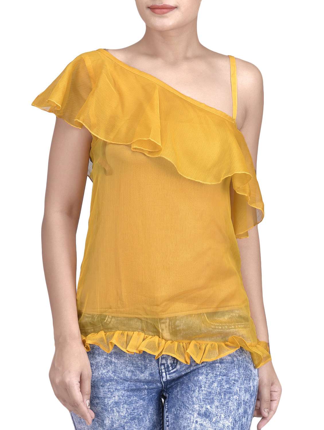 #2 Yellow Polyester Solids One Shoulder Dress & similar products...
