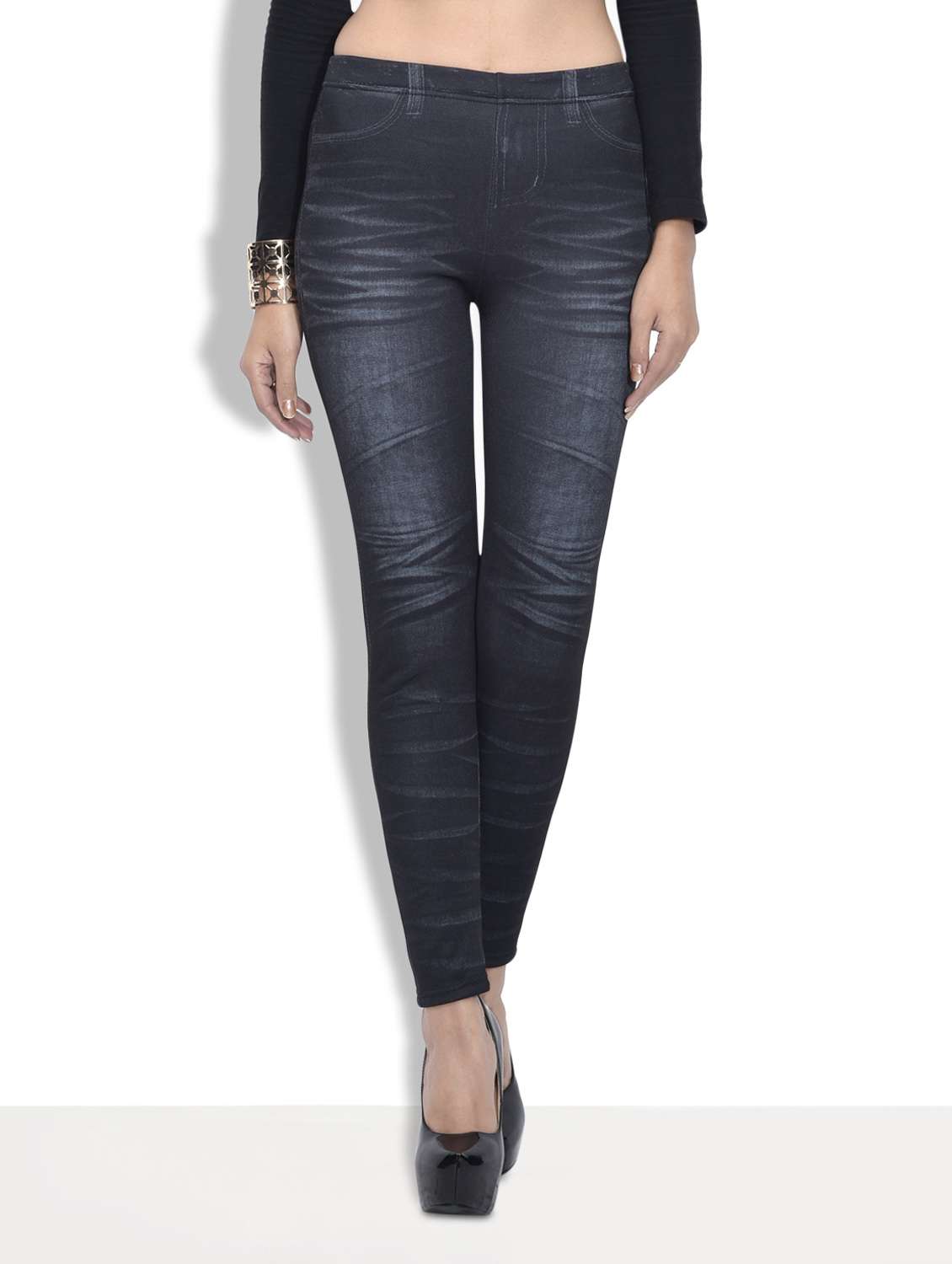 #1 black stone washed woolen jeggings & similar products...