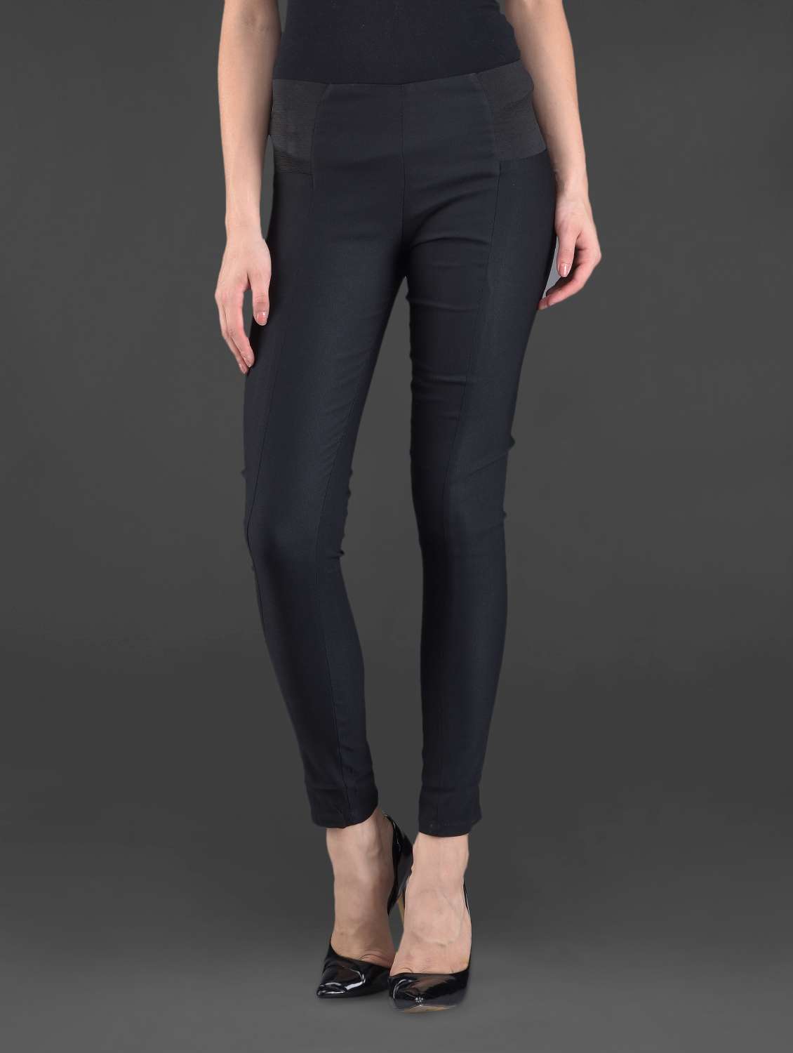 #1 Solid black cotton lycra fitted pants & इसी तरह के उत्पाद...