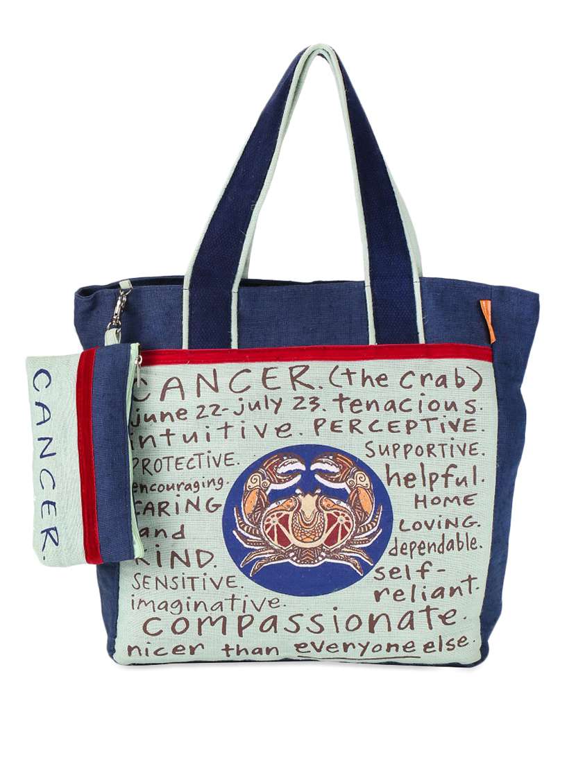 #2 blue & grey cancerian jute tote bag & similar products...