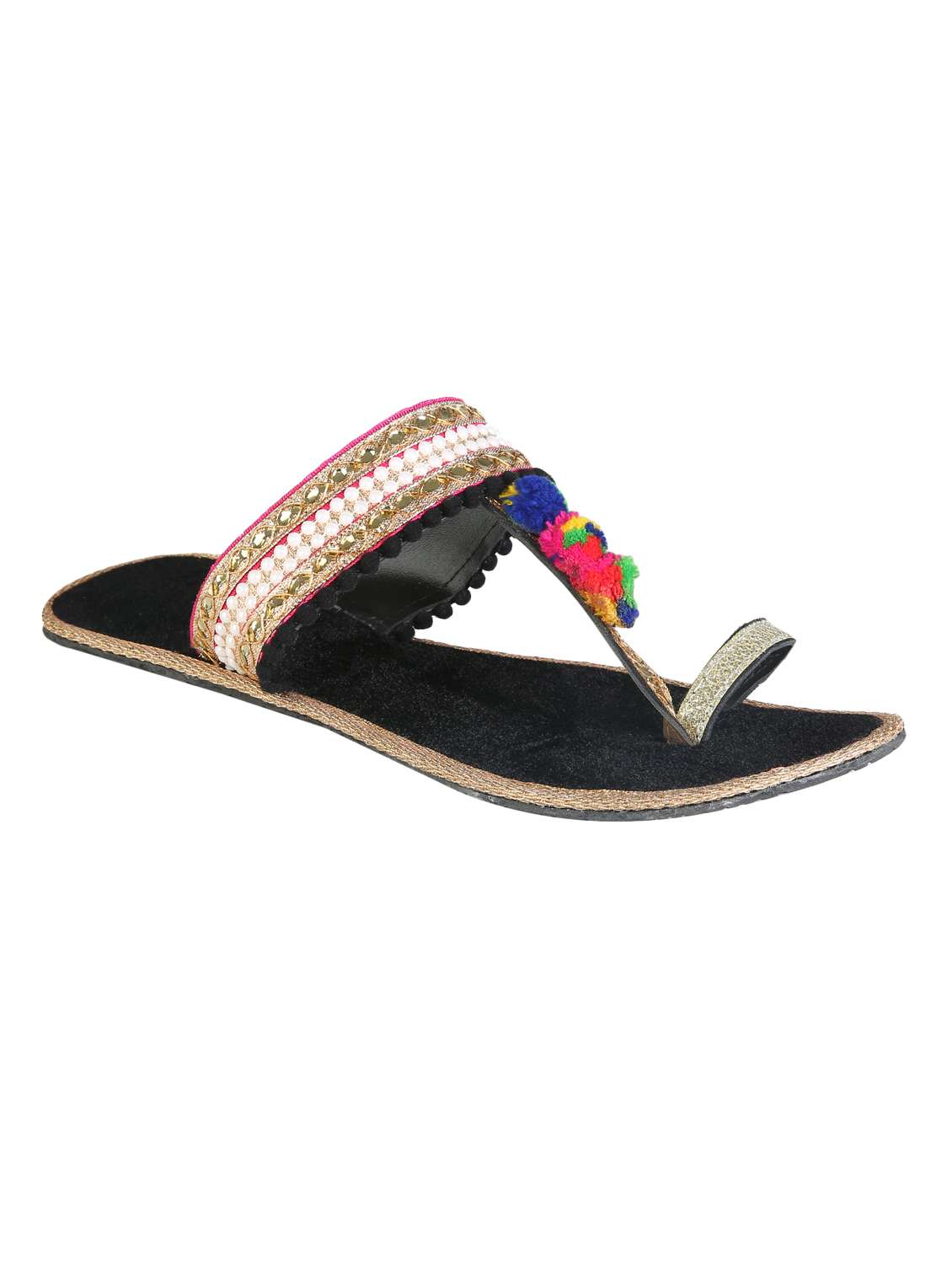 #4 Black Pom Poms One Toe kolhapuri & similar products...