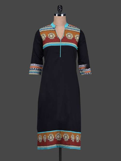 #1 printed yoke border black kurta & similar products...