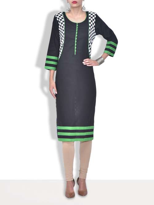 #1 black cotton printed three quarter sleeved long kurta & similar products...