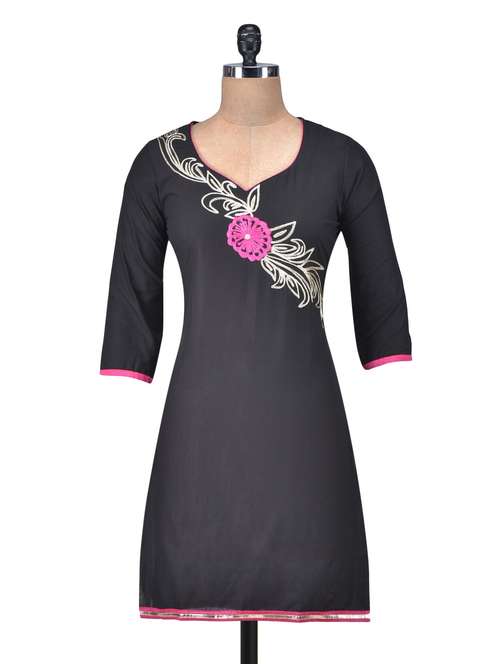 #1 black cotton embroidered kurti & similar products...