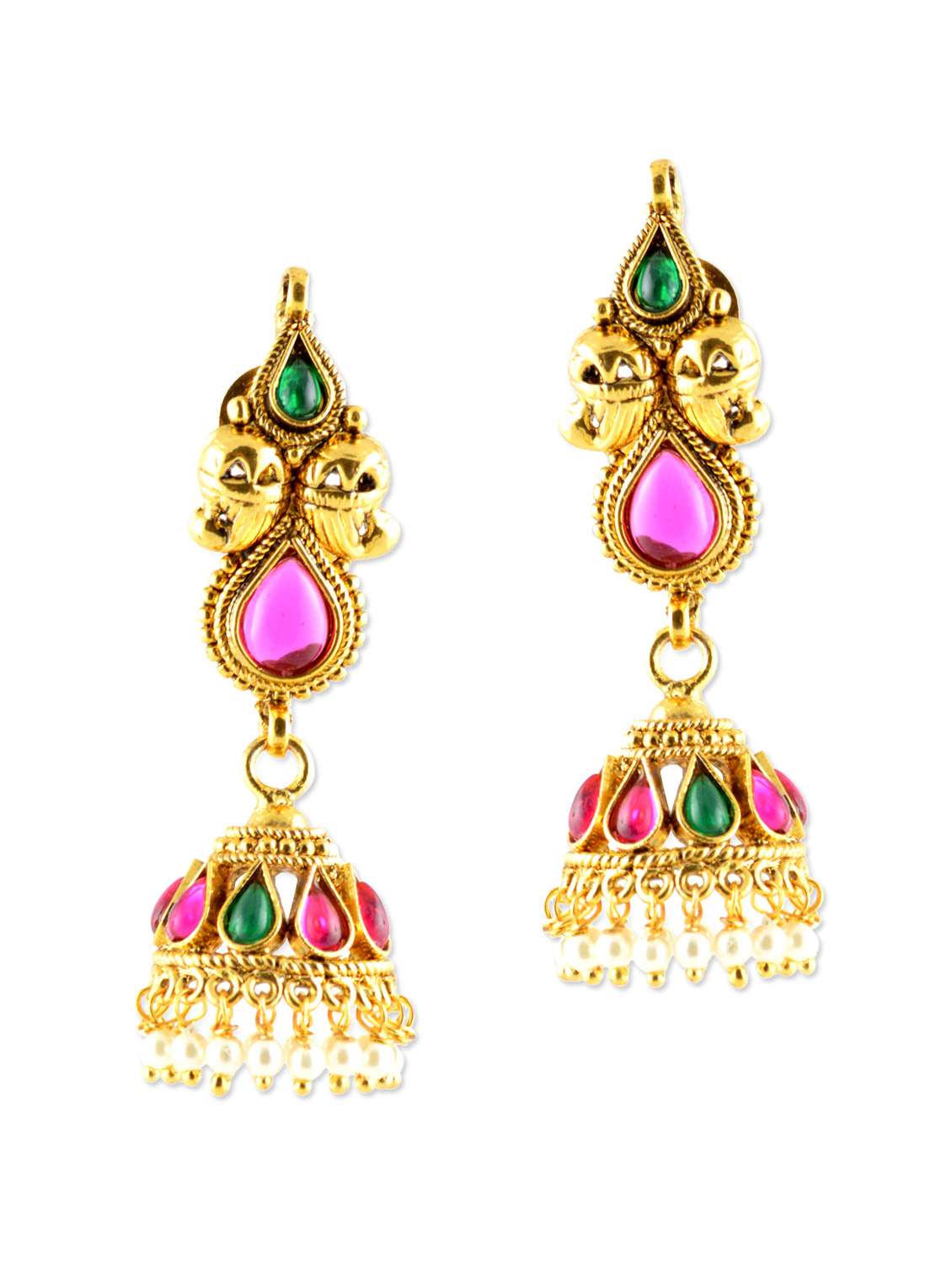 #2 ethnic jhumkas with mauve and green stones & similar products...