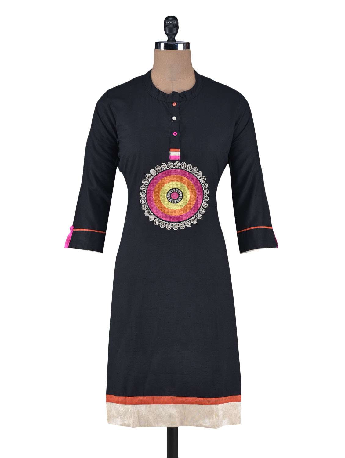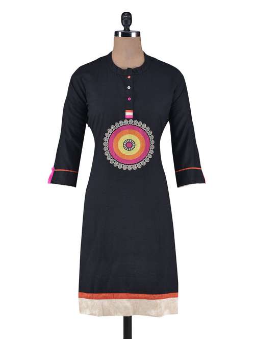 #1 Embroidered Black Khadi Cotton Kurta & similar products...