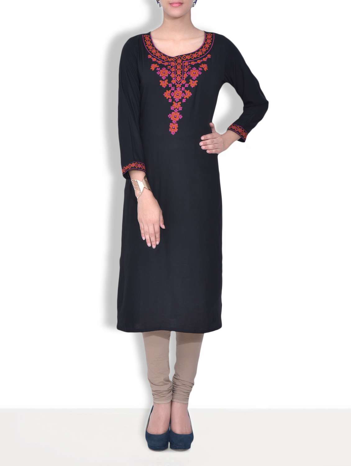 #1 embroidered black cotton long kurta & similar products...