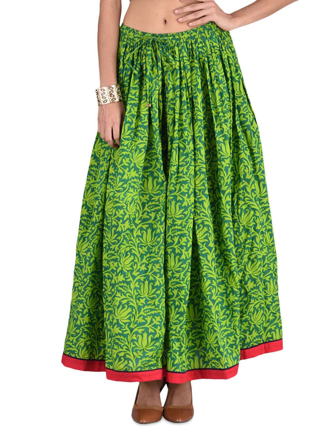 #2 Green Printed Gathered Cotton Long Skirt & similar products...