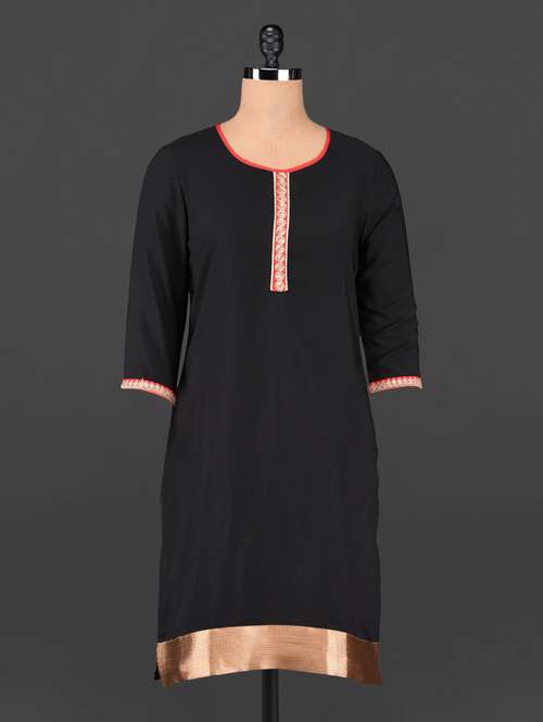 #1 Black Round Neck Zari Border Kurta & similar products...