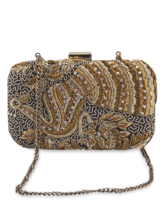 #4 black and gold embroidered box clutch & similar products...