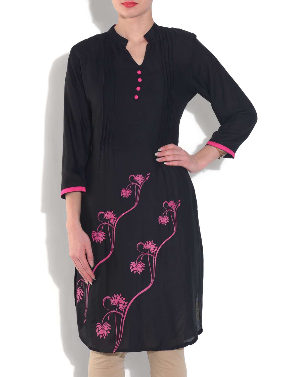 #1 black embroidered cotton kurta & similar products...