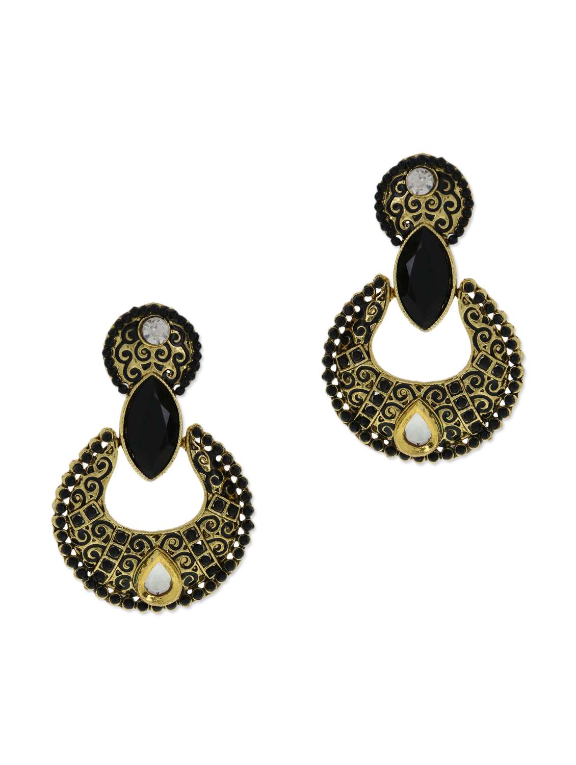 #2 embellished black enamel and gold chandbali earrings & similar products...