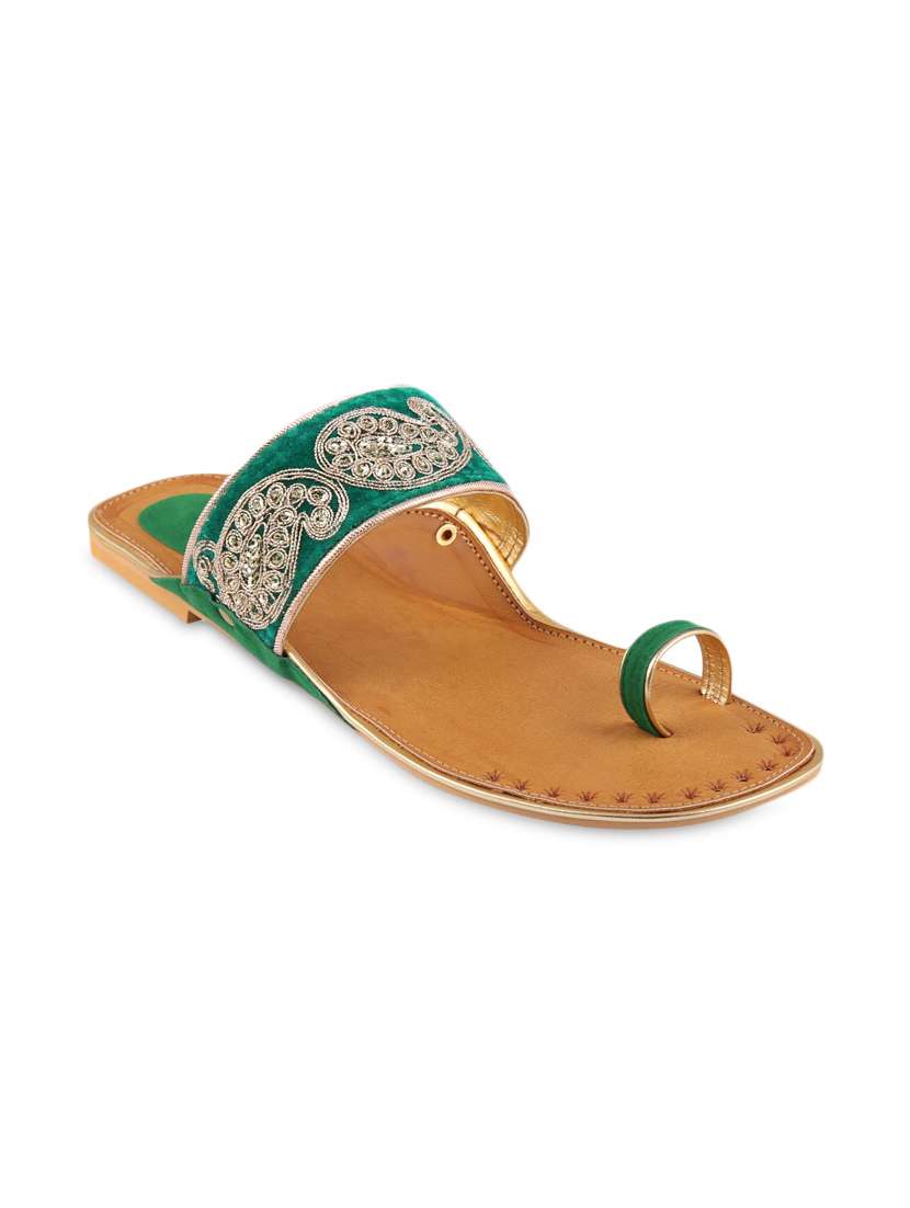 #3 teal green paisley embellished suede kolhapuris & similar products...