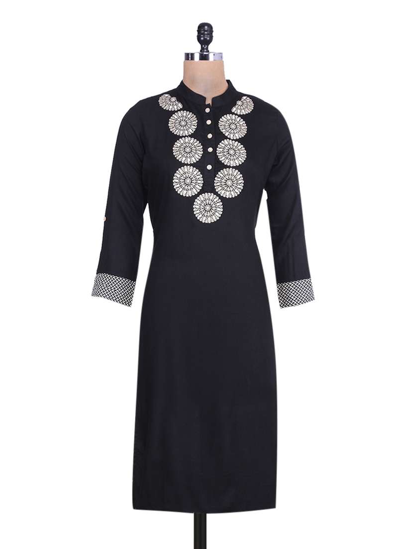 #1 black embroidered quarter sleeved rayon kurta & similar products...
