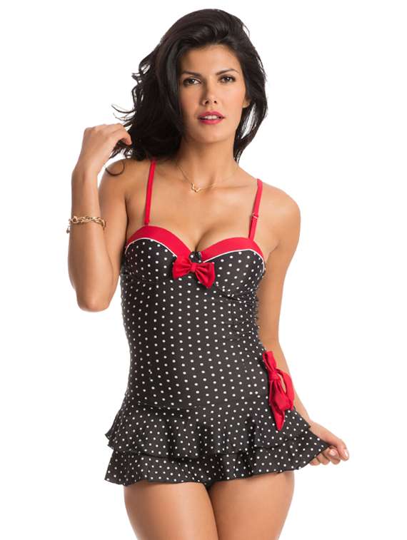 #1 black polka swim dress with playful bows & similar products...
