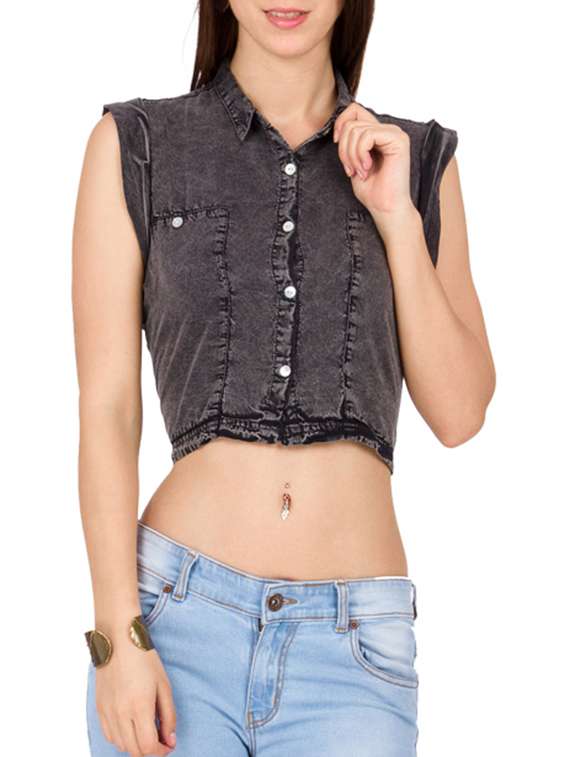 #3 black shirt collar cotton crop top & similar products...