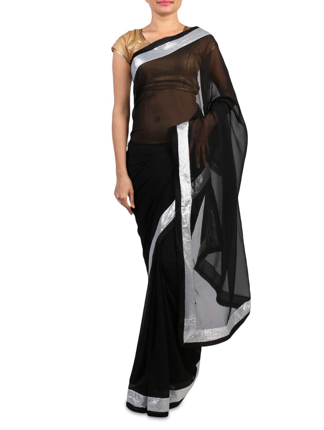 #1 black georgette saree with silver border & similar products...