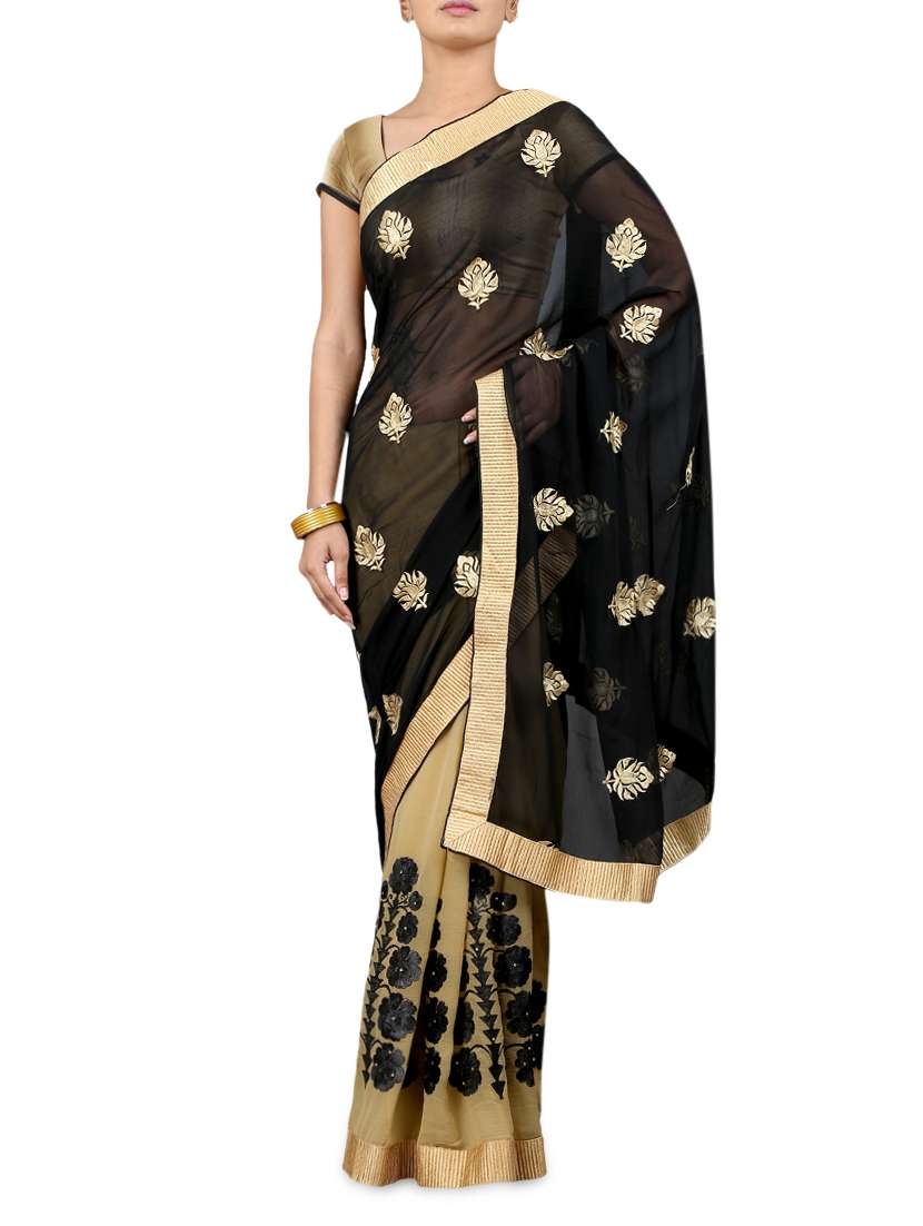 #1 Embroidered Black and Beige Net Saree & similar products...