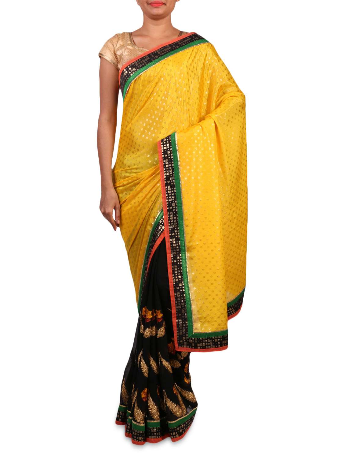 #1 black georgette embroidered saree & similar products...