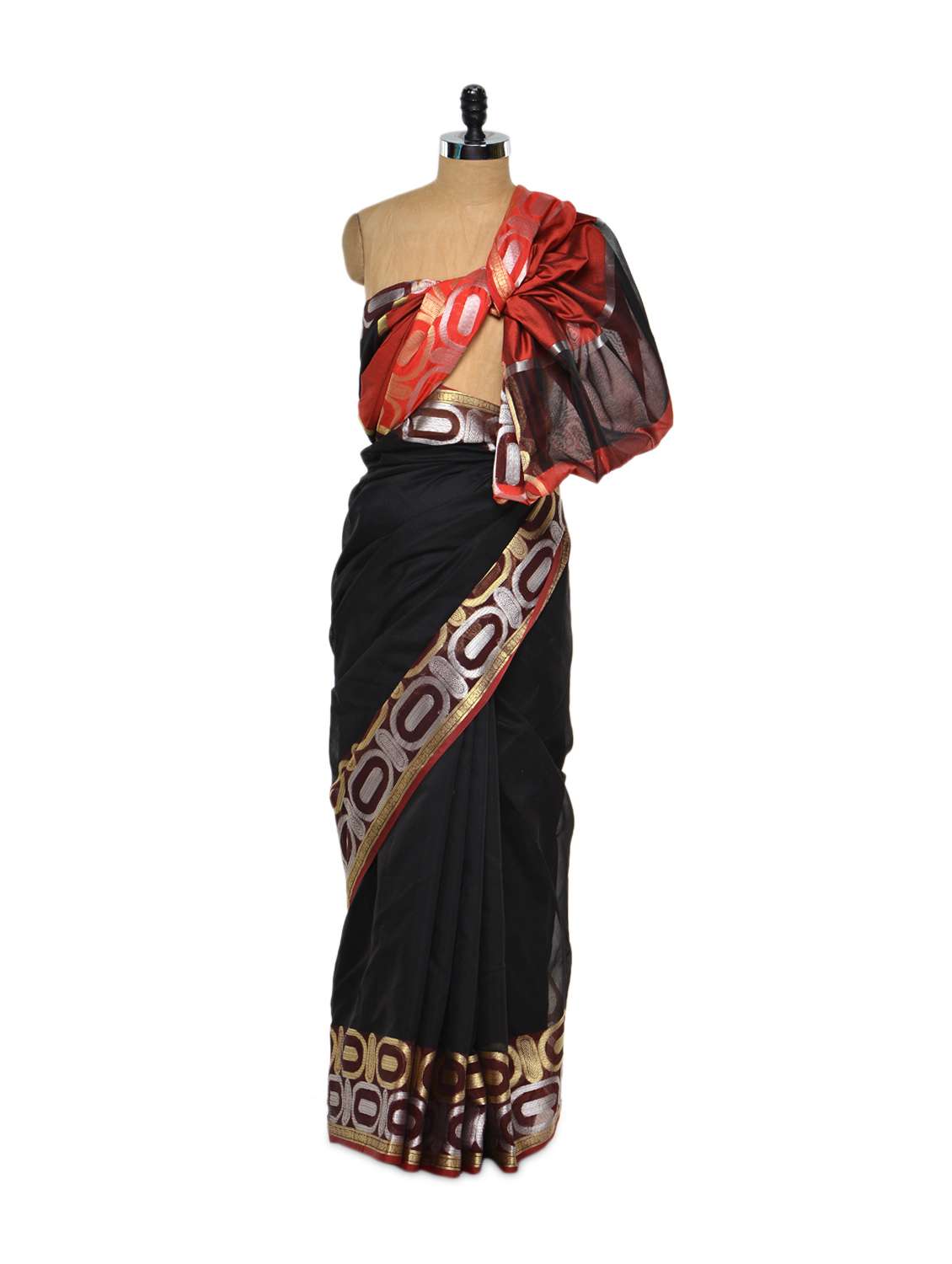 #1 Luxe black cotton silk saree & similar products...