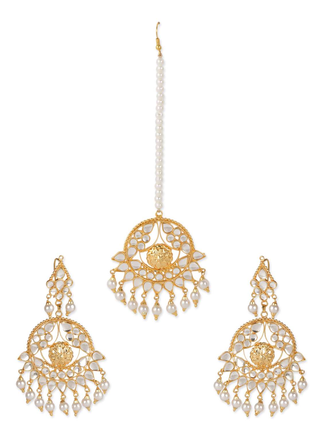 #2 white beads and kundan embellished earrings cum maang tika & इसी तरह के उत्पाद...