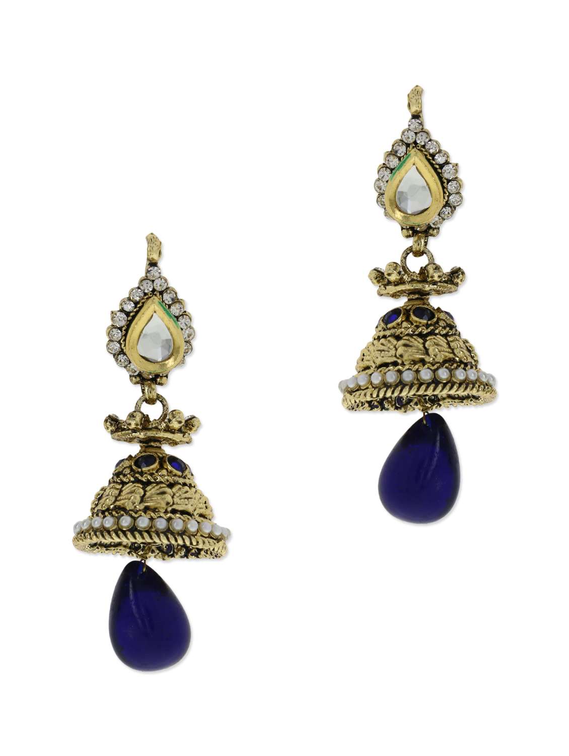 #2 embellished blue and antique gold jhumka earrings & इसी तरह के उत्पाद...